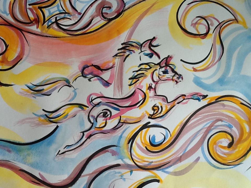 Today I have been creating some fairground style images for a painting commission. Memories of my design work on Daisy and Tom surface as I paint. See Interiors and Events in my website menu for more about Daisy and Tom.